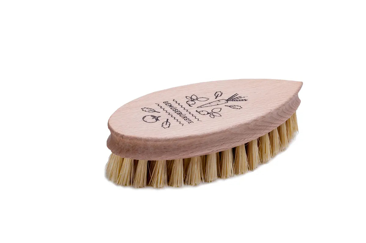 Die Gemüsebürste aus Holz mit Fibre-Borsten ist ein umweltfreundliches Reinigungswerkzeug für die gründliche Reinigung von Obst und Gemüse. Das hochwertige Holzmaterial sorgt für Langlebigkeit und Nachhaltigkeit, während die Fibre-Borsten eine effektive Entfernung von Schmutz und Rückständen ermöglichen, ohne die empfindliche Haut von Obst und Gemüse zu beschädigen. Der praktische Aufdruck auf dem Griff verleiht der Bürste eine ansprechende Optik und ermöglicht eine einfache Identifizierung. Ideal für die Küche zu Hause oder professionelle Anwendungen in Restaurants und Lebensmittelgeschäften. Mit der Gemüsebürste aus Holz mit Fibre-Borsten können Sie Ihr Obst und Gemüse mühelos reinigen und für den Verzehr vorbereiten, ohne Chemikalien oder aggressive Reinigungsmittel verwenden zu müssen.