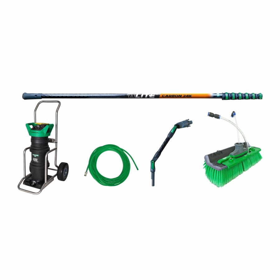 Das UNGER HydroPower® Ultra DI Fortgeschrittenen Set LC ist eine umfassende Lösung für professionelle Glasreinigungsaufgaben. Das Set umfasst den HydroPower® Ultra Filter LC mit Karre, der eine zuverlässige Reinigung mit Reinwasser gewährleistet. Die CF86G nLITE®Carbon 24K bietet eine beeindruckende Reichweite von 8,60 Metern für die Reinigung von schwer zugänglichen Bereichen. Der NGS30 nLITE®Winkeladapter Set M mit einer Länge von 42 cm ermöglicht eine präzise Reinigung von Ecken und Kanten. Die NFR28 nLITE®Winkelbürste mit einer Länge von 28 cm ist ideal für die Reinigung von Glasflächen und anderen Oberflächen. Der DLS25 DuroFlex-Schlauch mit einer Länge von 25 Metern bietet ausreichend Flexibilität für verschiedene Reinigungsaufgaben. Das UNGER HydroPower® Ultra DI Fortgeschrittenen Set LC ist die ideale Wahl für professionelle Reinigungsdienstleister, die Wert auf Effizienz, Zuverlässigkeit und Qualität legen.