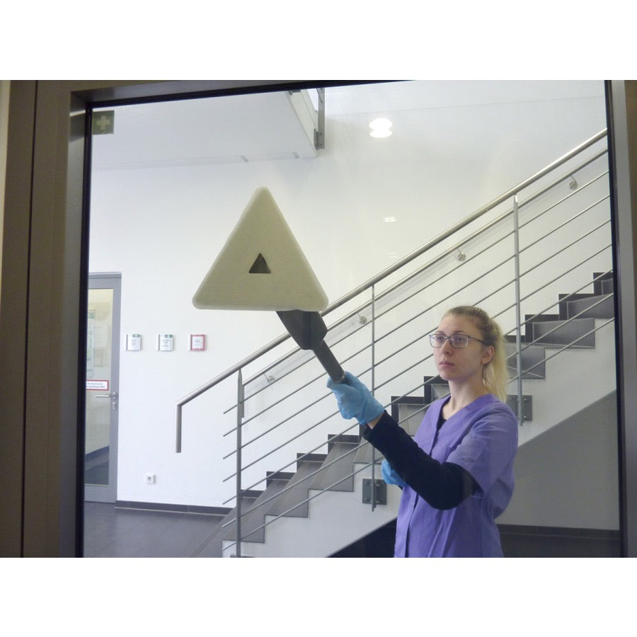 Das Herzstück des Sets ist der UNGER Stingray® 100 OS Reinigungsstab, der mit einer leistungsstarken Sprühfunktion ausgestattet ist. Diese Funktion ermöglicht eine gleichmäßige Verteilung des Reinigungsmittels auf der zu reinigenden Oberfläche, was eine effektive Reinigung und Entfernung von Schmutz, Staub, Fingerabdrücken und anderen Verunreinigungen erleichtert.